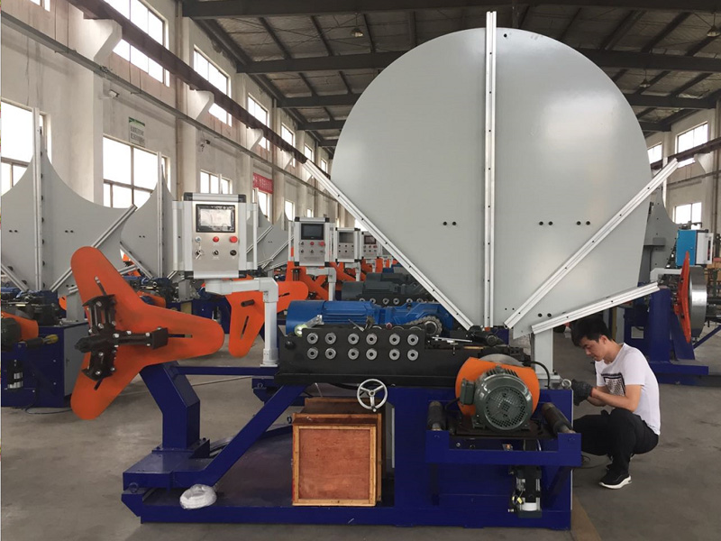 The machine has a cutting roller device; to manufacture the ducts in different lengths and diameters.